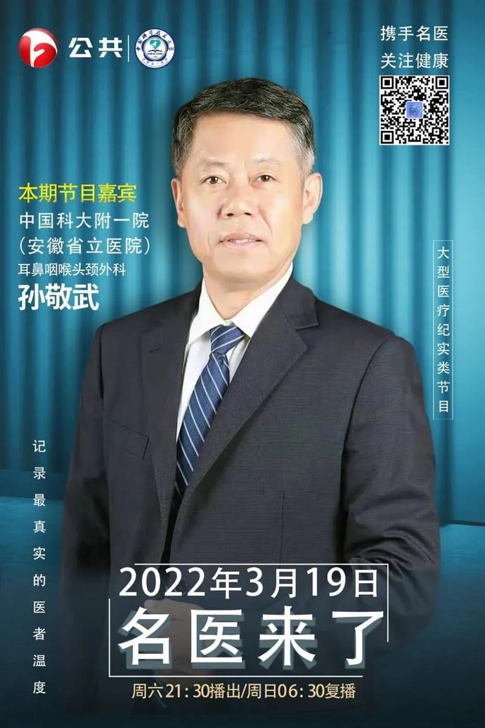 本期《名医来了》我们一起认识中国科大附一院耳鼻咽喉头颈外科孙敬武教授。